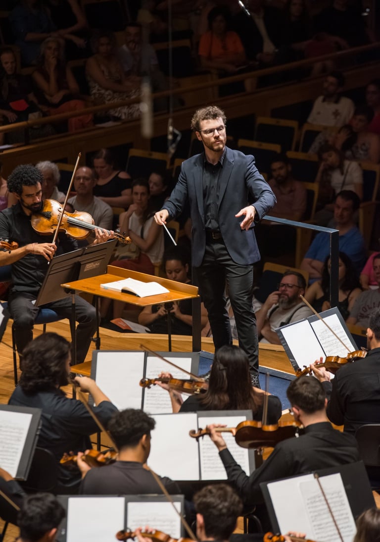 Premiado no I Concurso de Regência Maestro Isaac Karabtchevsky e destaque no Szolnok Masterclass, na Hungria, Felipe Biesek foi aluno da Academia da Osesp e bolsista em três edições do Festival de Inverno de Campos do Jordão.
